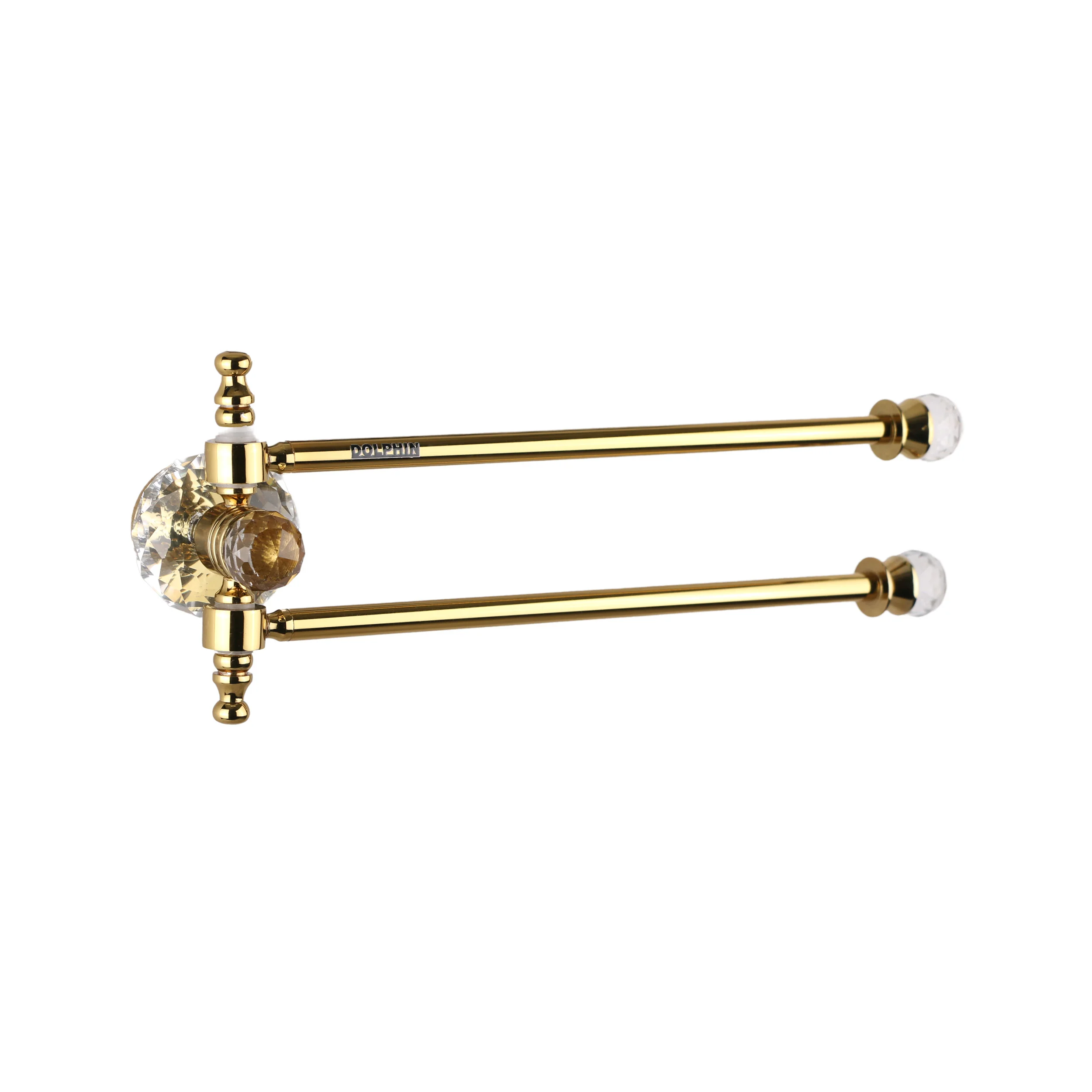 پایههای کریستالی و جزئیات زیبا در طراحی، این جای حولهای را به یک قطعه دکوری فوقالعاده تبدیل کرده است. طراحی دوبل این محصول امکان آویختن همزمان دو حوله را فراهم کرده و آن را به گزینهای کارآمد برای محیطهای خانوادگی یا فضاهای پرتردد تبدیل میکند.