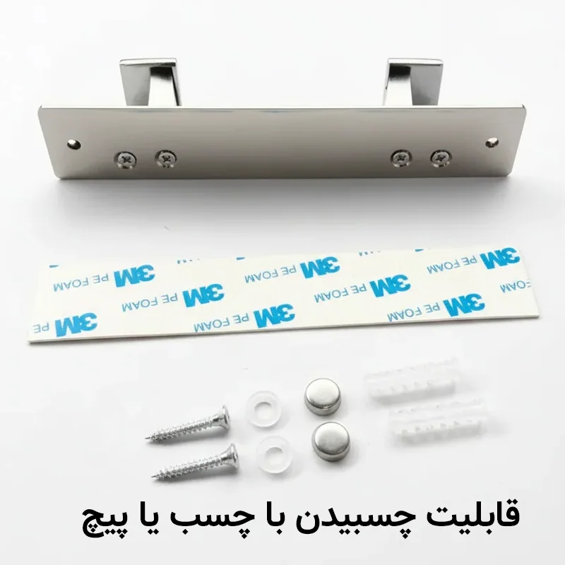 نصب آن به دو روش قابل انجام است: چسب ۳M قوی برای نصب بدون سوراخکاری، یا پیچ و رولپلاک برای نصب دائمیتر.
