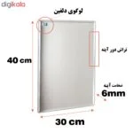 نصب آینه مدل T-4030 کار بسیار سادهای است. با استفاده از آویزهایی که در 2 جهت نصب شدهاند میتوانید آن را بصورت عمودی و افقی نصب نمایید. هنگام نصب این آینه روی دیوار توجه داشته باشید که آینه را خیلی پایین یا بالا نصب نکنید. فاصلهی آینه تا زمین کاملا مناسب باشد که همهی اعضای خانواده بتوانند تصویر خود را در آینه ببینند. اگر مقابل آینهای که نصب کردهاید میز قرار میدهید، توجه داشته باشید که سطح میز کاملا مقابل آینه قرار بگیرد. برای زیبایی بیشتر از وسایل تزیینی و زیبا روی میز استفاده کنید؛ زیرا آینه آن را به خوبی منعکس میکند و زیبایی وسایل را دو چندان میکند. همچنین بسته بندی محصول با استفاده از نایلون حبابی و کارتن چند لایه محکم شده که در حمل و نقل صدمهای به آن وارد نشود.