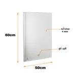 دارای چراغ ال ای دی در دو مدل آفتابی و یا مهتابی در حاشیه آینه دارای کلید روشن خاموش لمسی در پایین آینه دارای چراغ با نور آبی در حاشیه کلید لمسی جهت دید در تاریکی اتصال مستقیم به برق شهری(آداپتور به قسمت پشتی آینه متصل است) دارای نوار ال ای دی کم مصرف با عمر طولانی قابلیت تعویض نوار ال ای دی (به سادگی) |