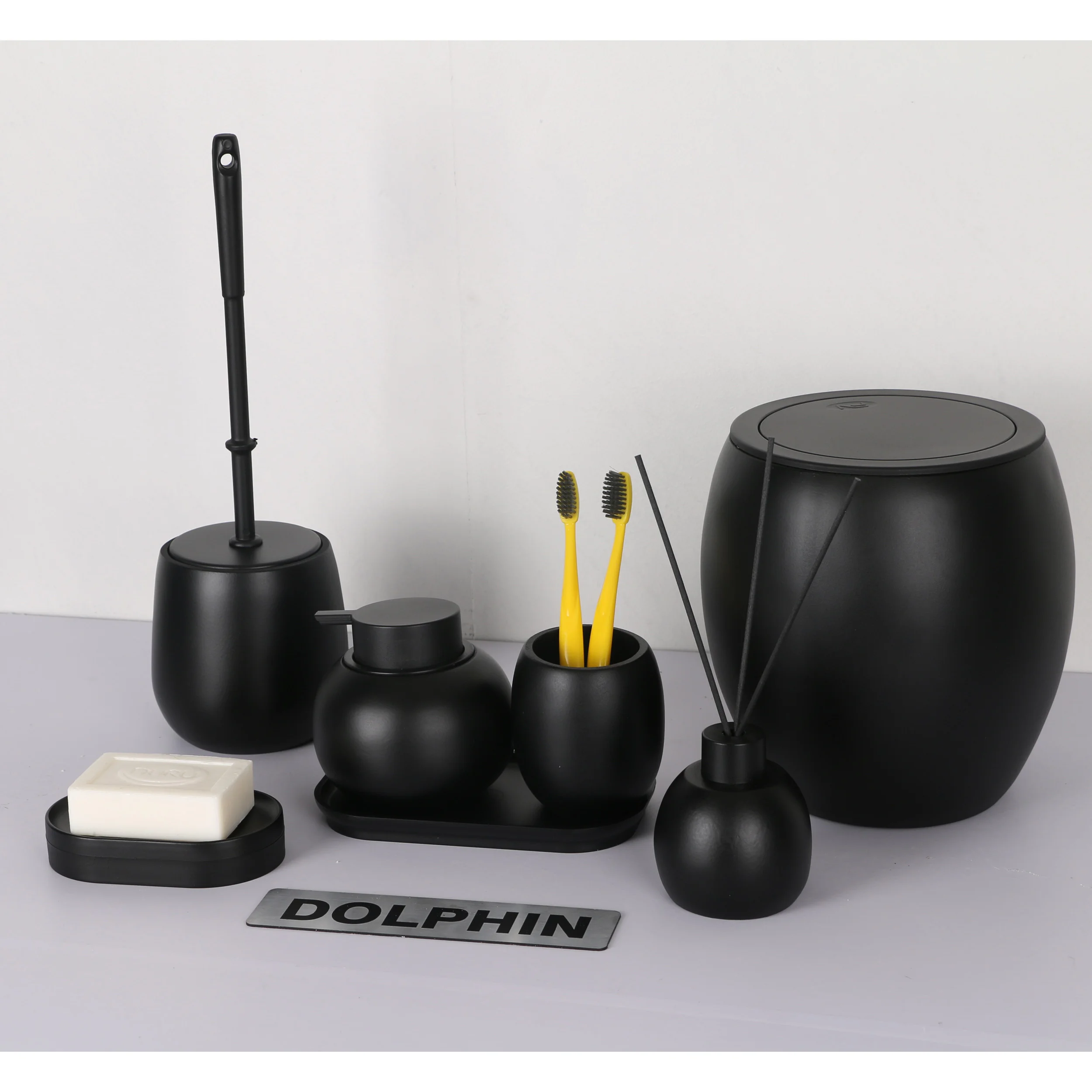 ست سرویس بهداشتی دکوراتیو دلفین از پلی رزین درجه یک ساخته شده است. ست دلفین تشکیل شده از، جای صابون، جای مسواک، سطل، توالتشور، جای مایع، و ظرف خشبوکننده به همراه سینی میباشد. ست رومیزی دلفین ضد زنگ و ضد باکتری است که مزیت بزرگی در سرویس بهداشتی است. طراحی مینیمال این محصول دلفین مناسب برای هر دکوری در سرویس بهداشتی میباشد. این محصول مناسب برای هدیه، جهیزیه و ایجاد یک دکور زیبا وایدهآل میباشد.