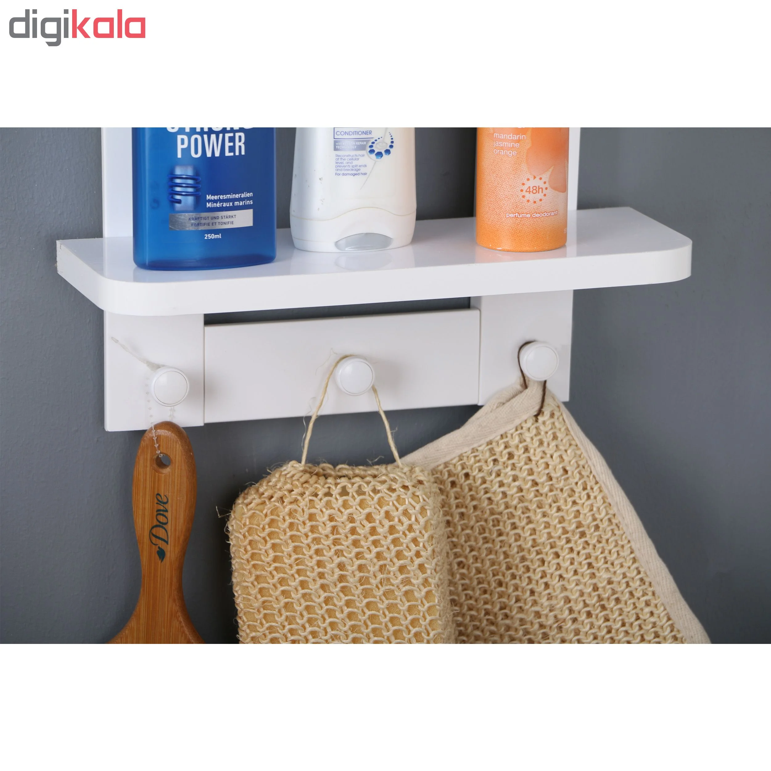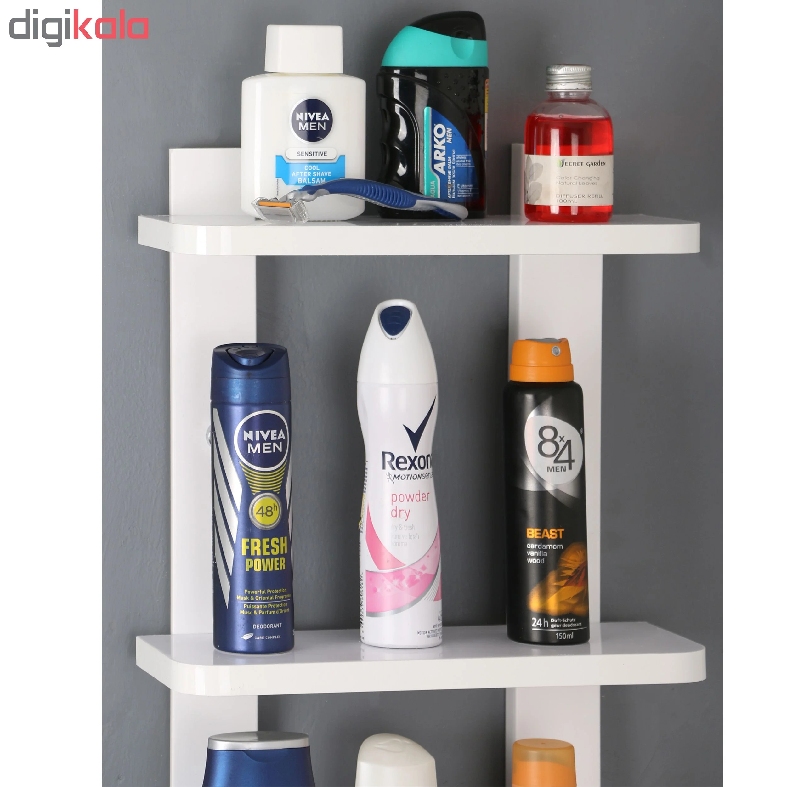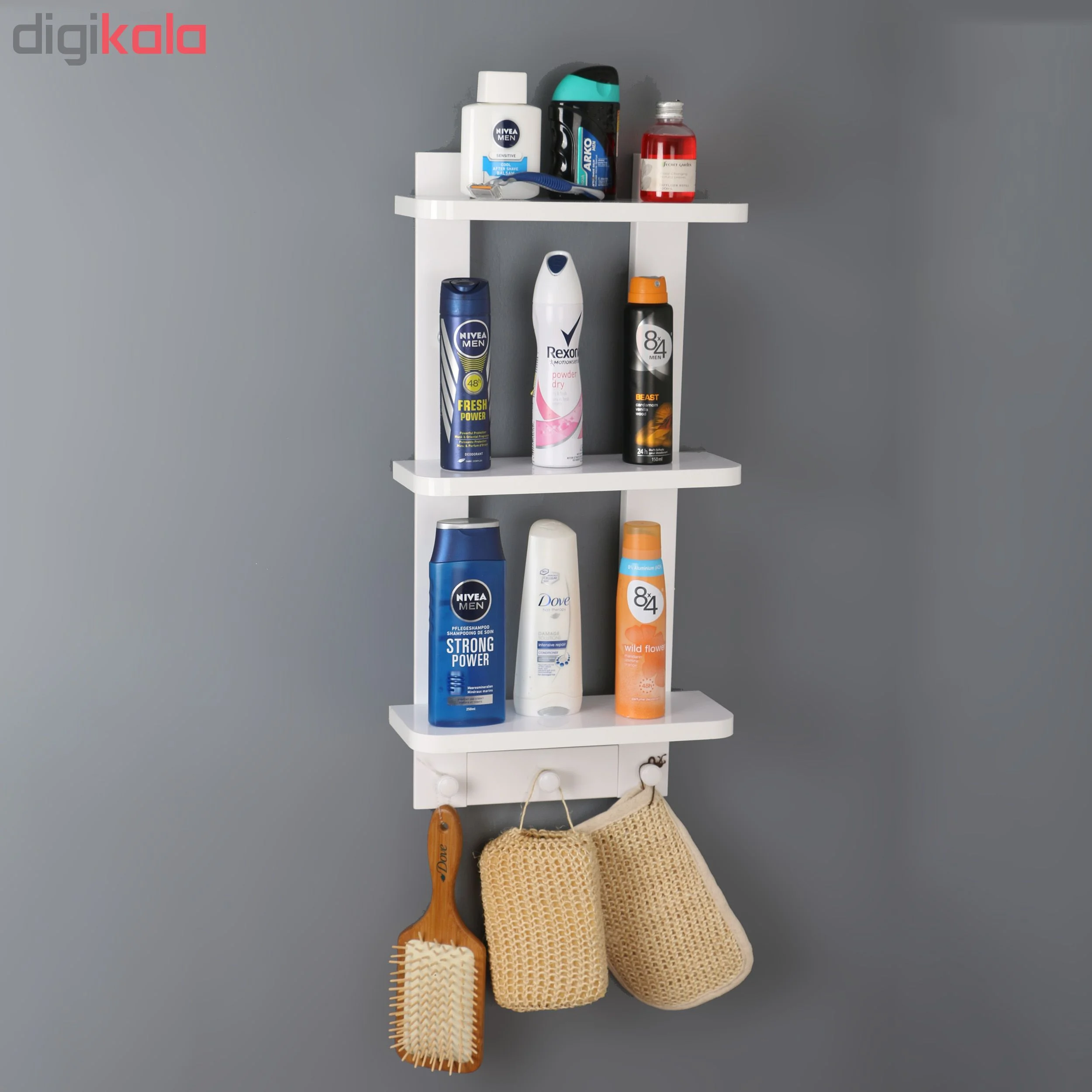 این قفسه حمام به صورت ساده، کاربردی و مقاوم طراحی شده است. ارتفاع طبقات به اندازه کافی بلند برای قرار دادن شامپو های بزرگ مناسب است. در این محصول قلاب های به منظور آویز کردن وسایلی نظیر لیف حمام در نظر گرفته شده است.