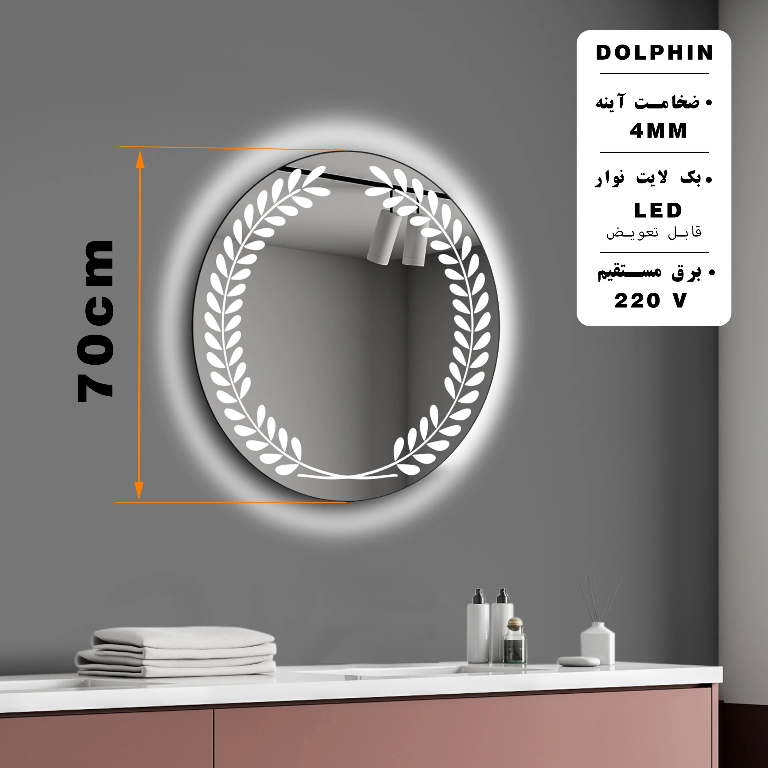آینه دلفین مدل N-SH-70 در دسته آینه لمسی دلفین ایران قرار دارد. این آینه دایره شکل و کاربرد تزئینی و روزمره دارد. ابعاد این آینه 70*70 سانتیمتر است.