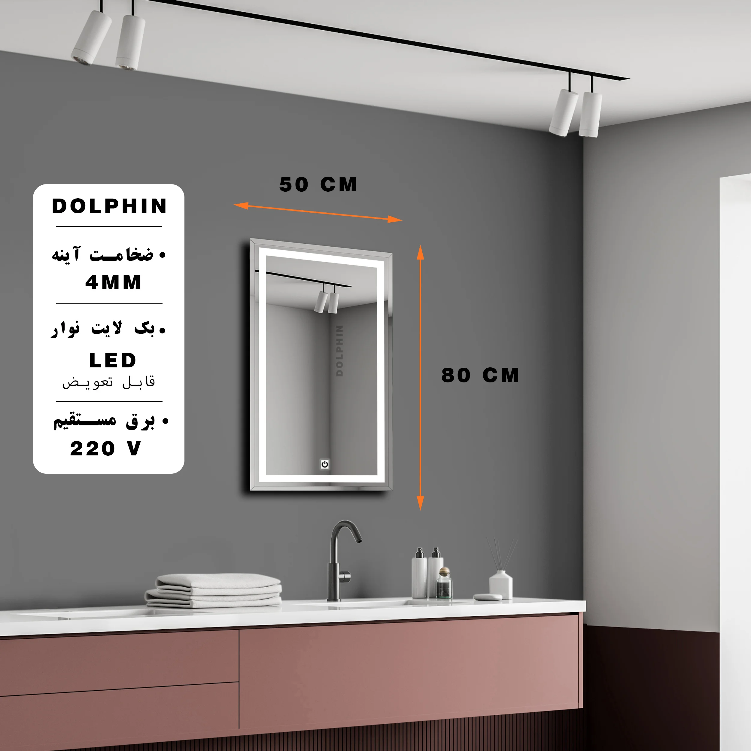 آینه لمسی دلفین مدل TCH-8050-T