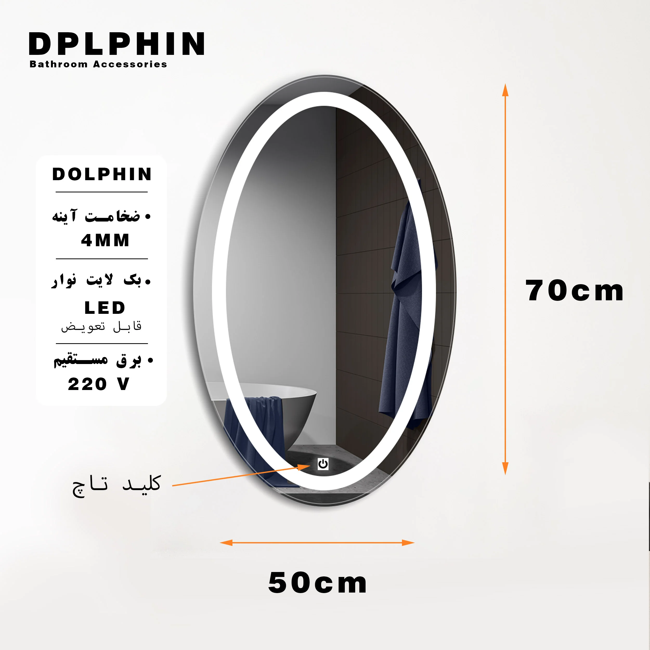 آینه لمسی دلفین مدل TCH-OV-70 در دسته آینه لمسی دلفین ایران قرار دارد. این آینه بیضی شکل و کاربرد تزئینی و روزمره دارد. ابعاد این آینه 50*70 سانتیمتر است.