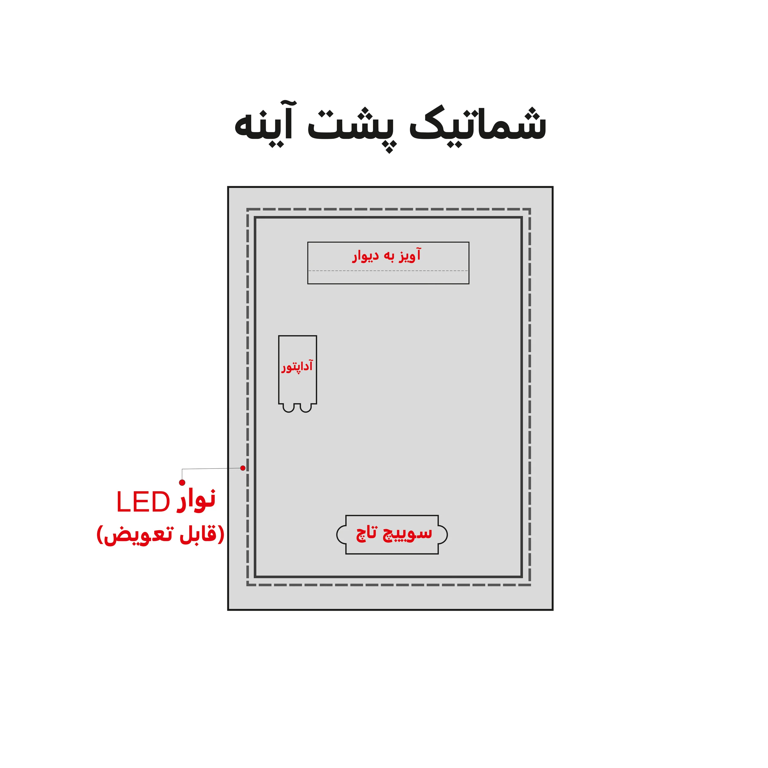 اتصال مستقیم به برق شهریآداپتور به قسم ,دارای چراغ ال ای دی در دو مدل آفتابی و یا ,دارای چراغ با نور آبی در حاشیه کلید لمسی ,دارای کلید روشن خاموش لمسی در پایین آین ,دارای نوار ال ای دی کم |