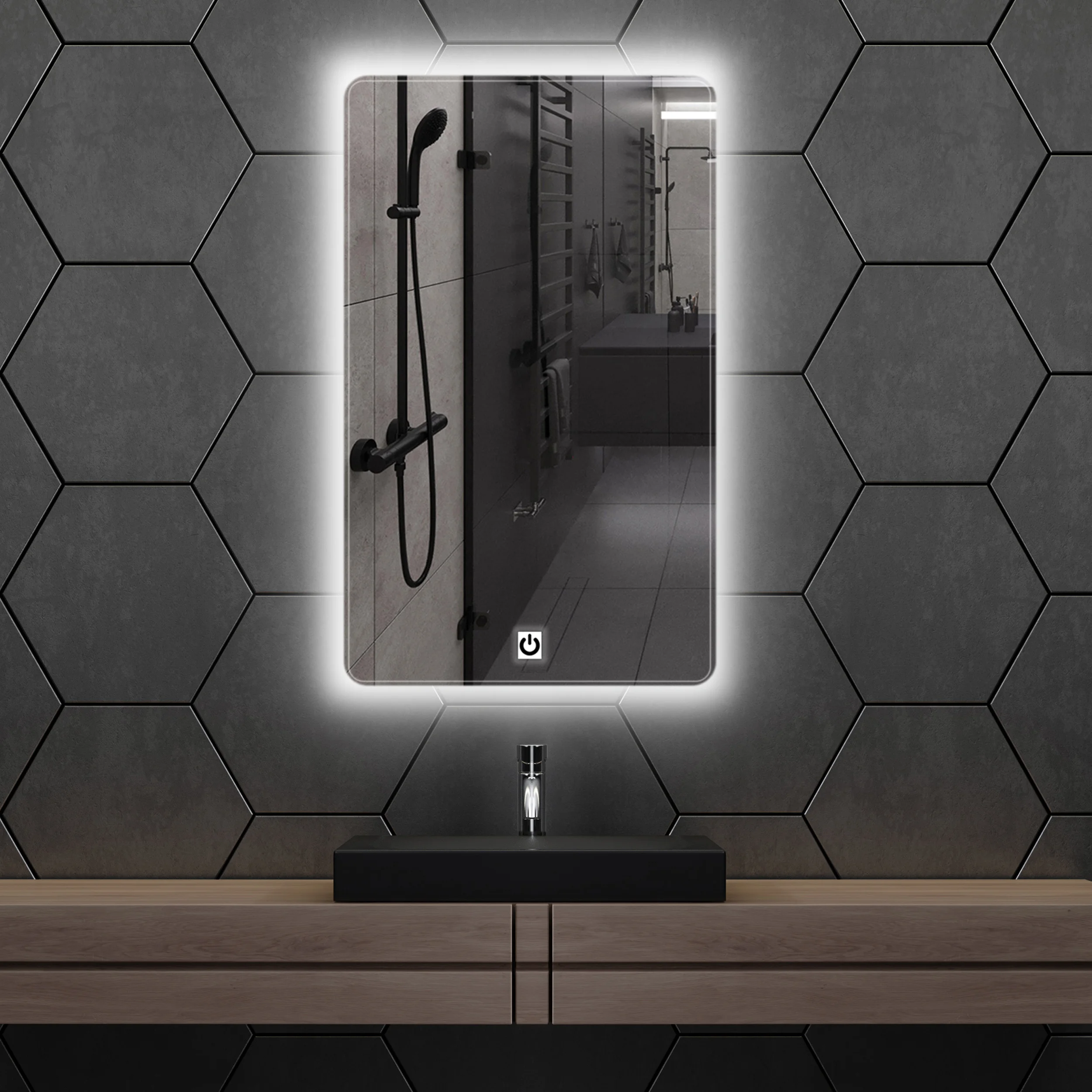 دسته: آینه, آینه بدون قاب, آینه بک لایت لمسی, آینه حمام