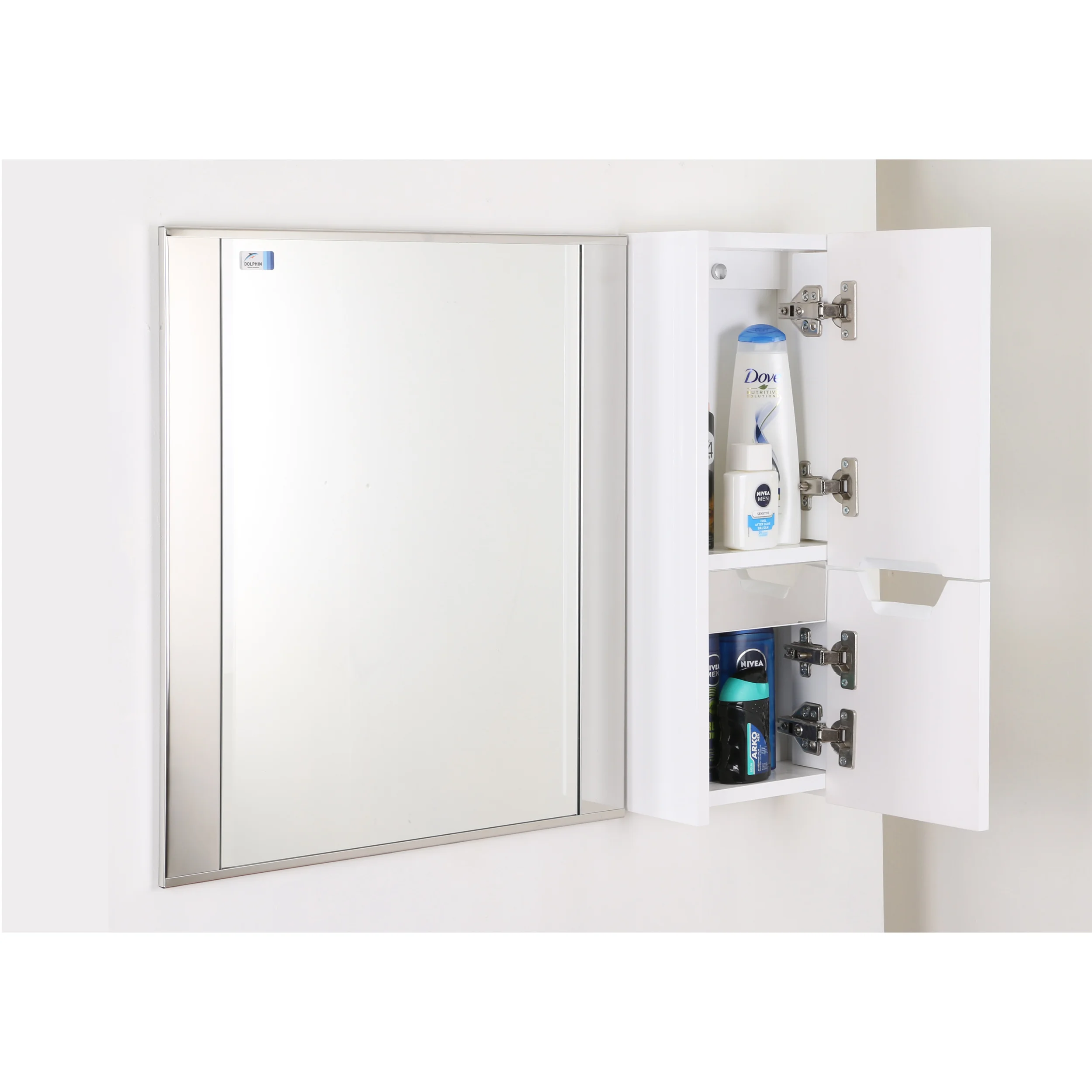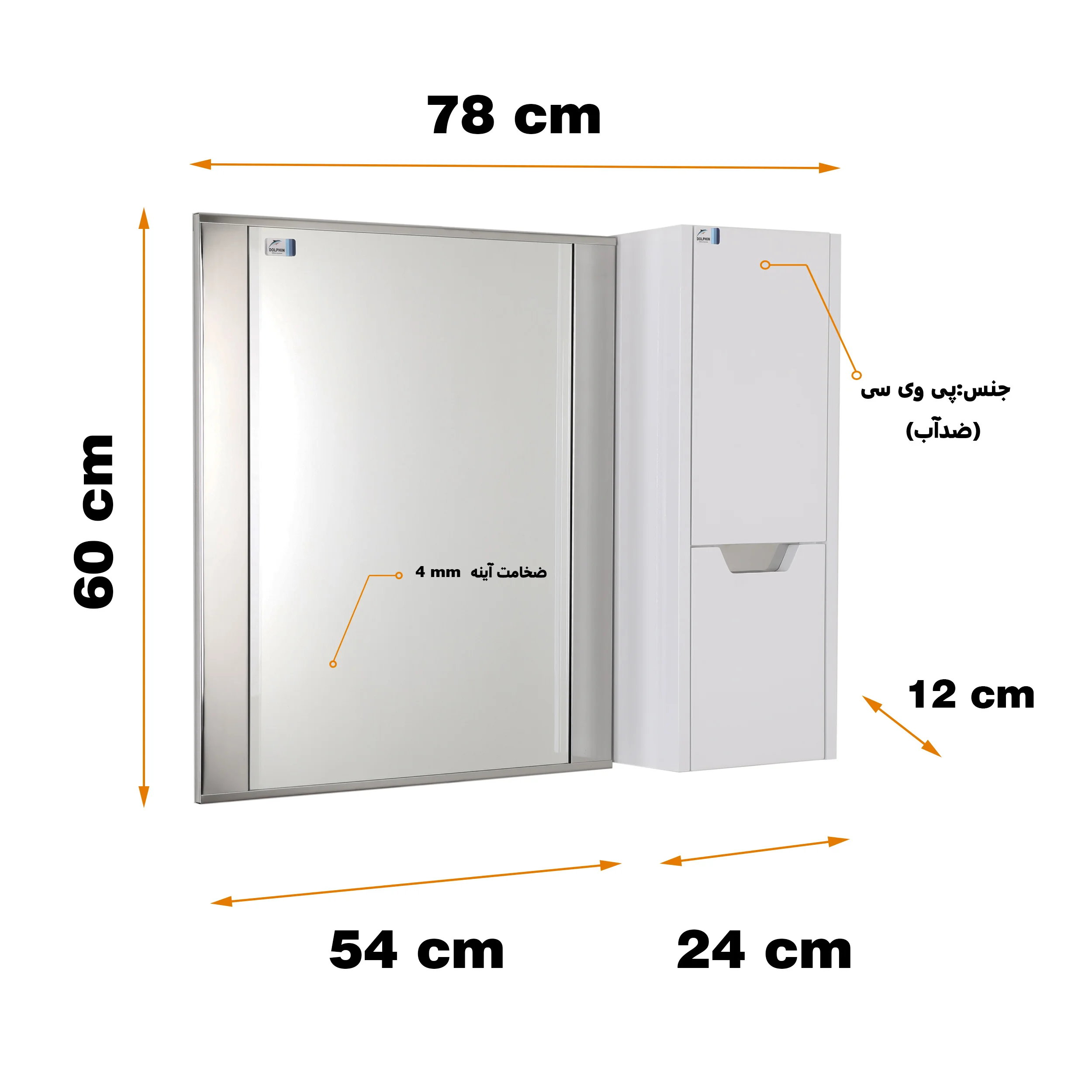 ست آینه و باکس دلفین مناسب برای محیطهای رطوبتی و محصولی کاملا ایرانی است. آینه به کار رفته از نوع سوپرکریستال با پوشش 2 لایه است که مقاومت آینه را در برابر عوامل محیطی مثل رطوبت بالا میبرد. تکنولوژی فلوت (FLOAT) به کار رفته در تولید آینه باعث از بین رفتن هر گونه موج و همچنین بالا رفتن شفافیت آن شده است.