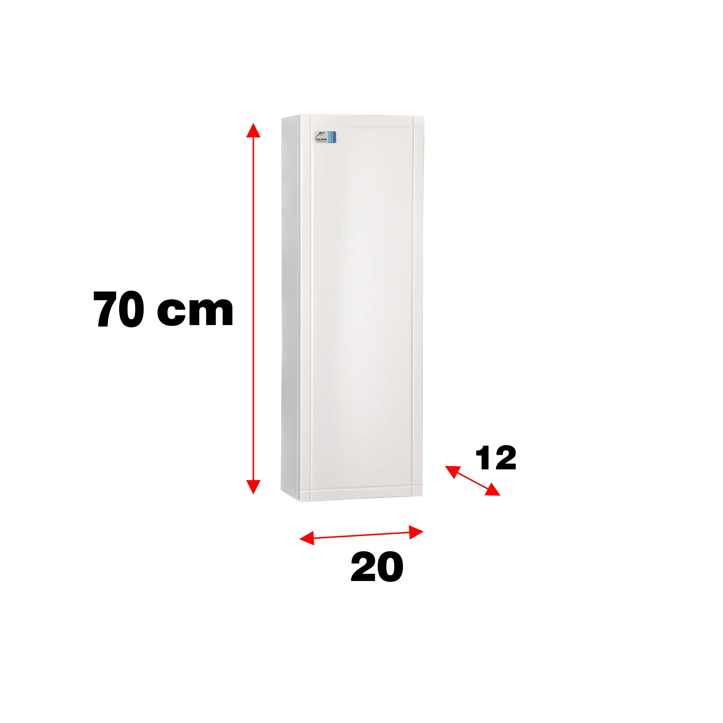 بدنه باکس دلفین مدل 70-1057 از جنس PVC است. این باکس به رنگ سفید است و علاوه بر جاحولهای، جا دستمالی نیز دارد. ابعاد باکس دلفین کد 70-1057 ، 12.5*20*70 سانتیمتر است.