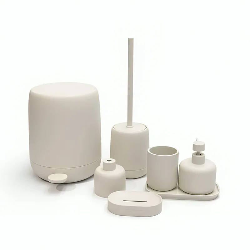 جنس این مجموعه از ترکیب پلیرزین و پلاستیک ABS ساخته شده که در برابر رطوبت، ضربه و مواد شوینده مقاومت بالایی دارد. سطح مات و رنگ کرم ملایم آن، حس آرامش و تمیزی را القا کرده و بهراحتی با دکورهای مدرن یا مینیمال هماهنگ میشود.