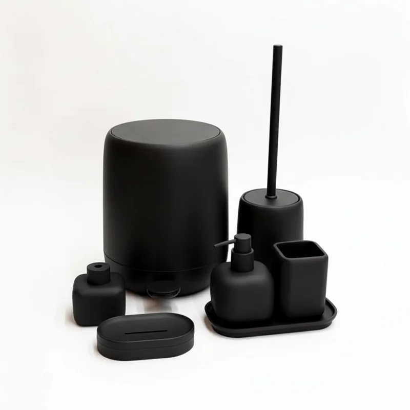ست سرویسبهداشتی دلفین از ترکیب رزین مقاوم و پلاستیک فشرده ABS ساخته شده تا جلوهای مینیمال، مدرن و درعینحال بادوام به فضای حمام شما ببخشد. این مجموعه شامل سطل زباله پدالی، جا مایع دستشویی، جا مسواکی، برس توالت، جا صابونی و زیره ست است که با طراحی یکدست و رنگ خالص مشکی، هماهنگی چشمنوازی در سرویسبهداشتی ایجاد میکند. سطوح مات با بافت نرم و مقاوم در برابر رطوبت، حس تمیزی و آرامش را القا کرده و در برابر تغییر رنگ یا خراش کاملاً پایدار است. طراحی ارگونومیک هر قطعه استفاده روزمره را راحتتر کرده و پاکسازی سطح محصولات بهسادگی انجام میشود. ست رزین و ABS دلفین نهتنها جلوهای ظریف و لوکس ایجاد میکند، بلکه انتخابی هوشمندانه برای کسانی است که دوام، زیبایی و هماهنگی در دکور سرویسبهداشتی را همزمان میخواهند.