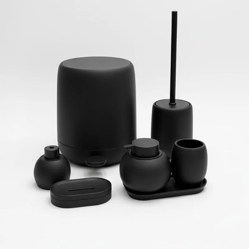 ست سرویسبهداشتی دلفین از ترکیب رزین مقاوم و پلاستیک فشرده ABS ساخته شده تا جلوهای مینیمال، مدرن و درعینحال بادوام به فضای حمام شما ببخشد. این مجموعه شامل سطل زباله پدالی، جا مایع دستشویی، جا مسواکی، برس توالت، جا صابونی و زیره ست است که با طراحی یکدست و رنگ خالص مشکی، هماهنگی چشمنوازی در سرویسبهداشتی ایجاد میکند. سطوح مات با بافت نرم و مقاوم در برابر رطوبت، حس تمیزی و آرامش را القا کرده و در برابر تغییر رنگ یا خراش کاملاً پایدار است. طراحی ارگونومیک هر قطعه استفاده روزمره را راحتتر کرده و پاکسازی سطح محصولات بهسادگی انجام میشود. ست رزین و ABS دلفین نهتنها جلوهای ظریف و لوکس ایجاد میکند، بلکه انتخابی هوشمندانه برای کسانی است که دوام، زیبایی و هماهنگی در دکور سرویسبهداشتی را همزمان میخواهند.