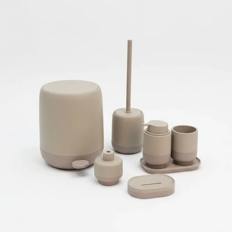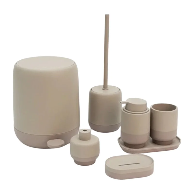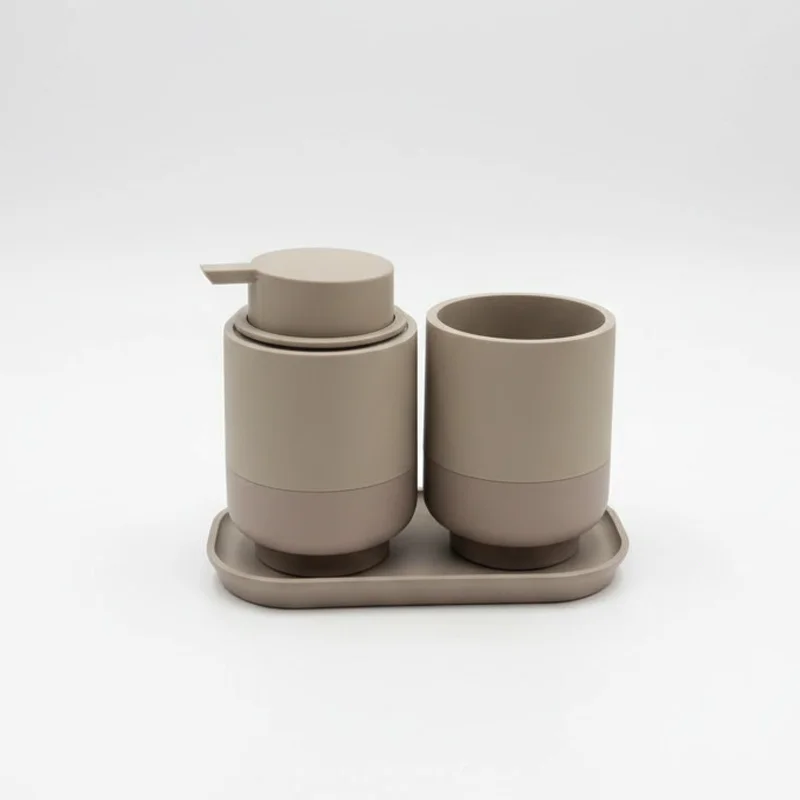جنس این مجموعه از ترکیب پلیرزین و پلاستیک ABS ساخته شده که در برابر رطوبت، ضربه و مواد شوینده مقاومت بالایی دارد. سطح مات و رنگ کرم تیره آن، حس آرامش و تمیزی را القا کرده و بهراحتی با دکورهای مدرن یا مینیمال هماهنگ میشود.