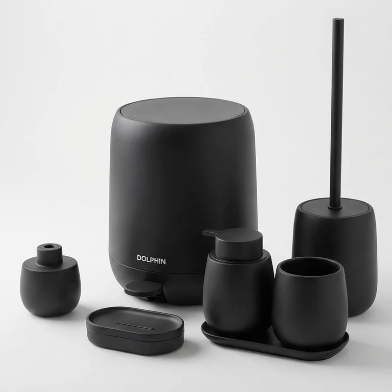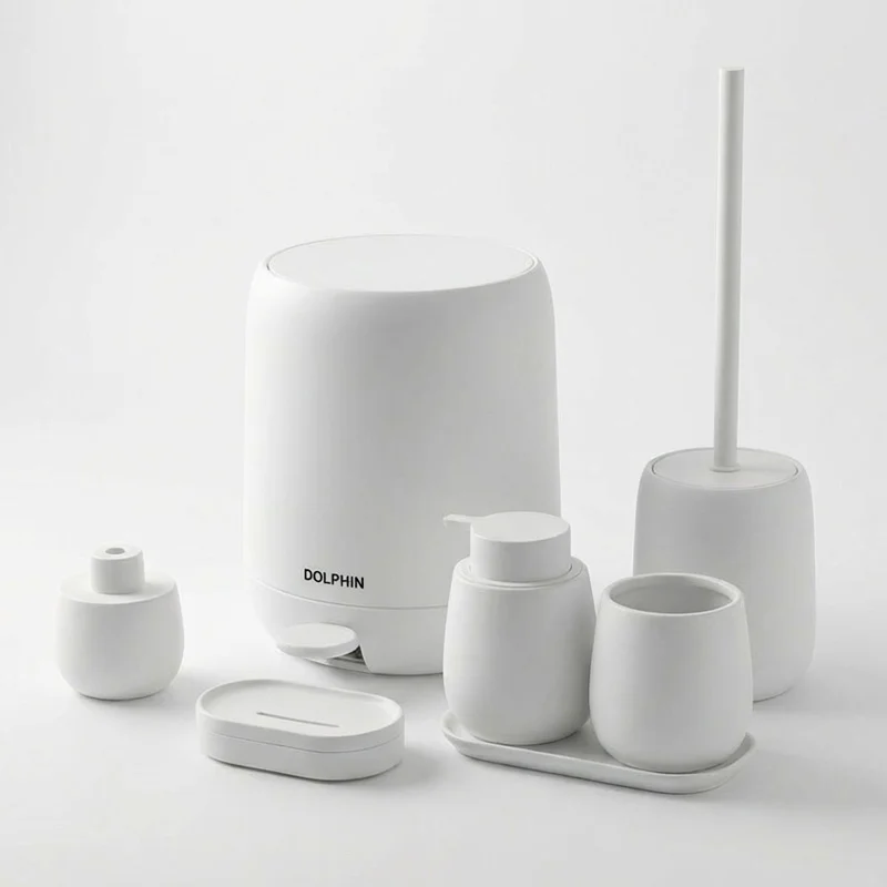 ست سرویسبهداشتی دلفین از ترکیب رزین مقاوم و پلاستیک فشرده ABS ساخته شده تا جلوهای مینیمال، مدرن و درعینحال بادوام به فضای حمام شما ببخشد. این مجموعه شامل سطل زباله پدالی، جا مایع دستشویی، جا مسواکی، برس توالت، جا صابونی و زیره ست است که با طراحی یکدست و رنگ خالص مشکی، هماهنگی چشمنوازی در سرویسبهداشتی ایجاد میکند. سطوح مات با بافت نرم و مقاوم در برابر رطوبت، حس تمیزی و آرامش را القا کرده و در برابر تغییر رنگ یا خراش کاملاً پایدار است. طراحی ارگونومیک هر قطعه استفاده روزمره را راحتتر کرده و پاکسازی سطح محصولات بهسادگی انجام میشود. ست رزین و ABS دلفین نهتنها جلوهای ظریف و لوکس ایجاد میکند، بلکه انتخابی هوشمندانه برای کسانی است که دوام، زیبایی و هماهنگی در دکور سرویسبهداشتی را همزمان میخواهند.