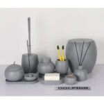 | توضیحات ابعاد | سطل:24x18x18 برس: 40x10x10 جا صابونی: 3×13.5×8 پمپ مایع : 13x10x10 جا مسواکی: 10×7.5×7.5 جا عودی : 9x8x8 سینی:9×19.5×11 |