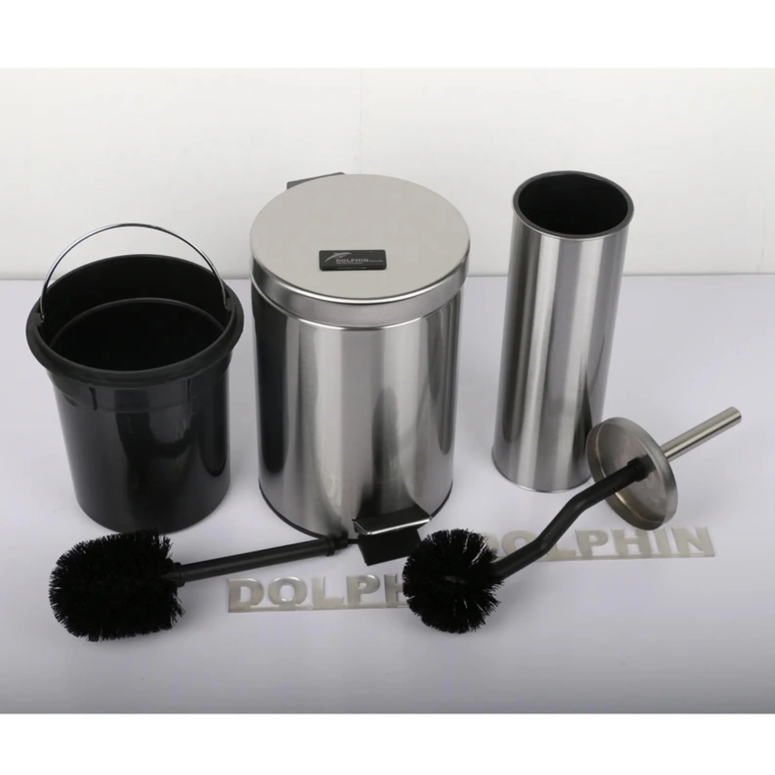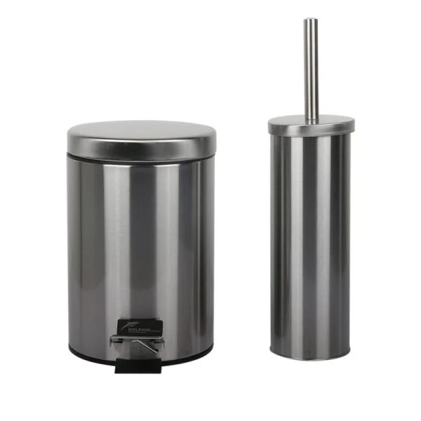 سطل و برس دلفین مدل Pry . این محصول ساخته شده از استیل ضد زنگ بوده که مناسب برای فضاهای رطوبتی میباشد. پدال و لوازم مرتبط با باز و بسته شدن درب بسیار محکم هستند که طول عمر بالایی داشته باشند. همچنین سطل داخلی قابل بیرون آوردن است تا تخلیه و شستشوی سطل آسان شده است.
