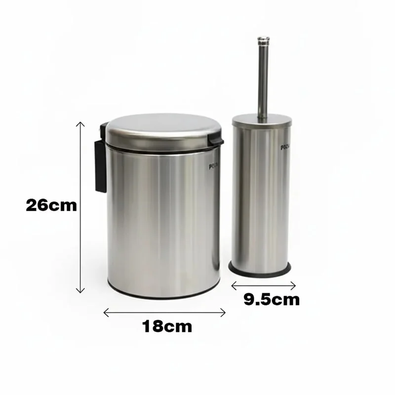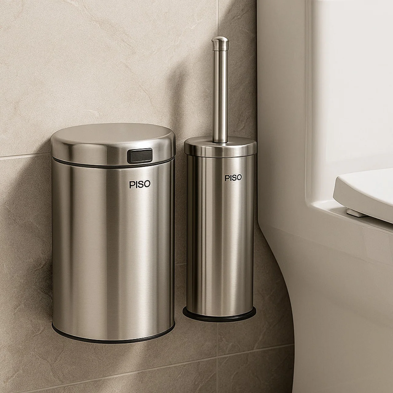 ست سطل و برس دیواری پیسو مدل P-3WT ترکیبی از طراحی مدرن و کاربردی برای سرویسهای بهداشتی امروزی است. این مجموعه از جنس استیل ضدزنگ 304 ساخته شده و در برابر رطوبت، زنگزدگی و تغییر رنگ مقاوم است. نصب دیواری آن باعث صرفهجویی در فضا، سهولت در نظافت کف و ایجاد جلوهای مرتب و شیک در سرویس بهداشتی میشود. سطل زباله این ست دارای درب آرامبند است که با عملکرد نرم و بیصدا باز و بسته میشود، و برس توالتشوی نیز درون محفظهی استیل قرار دارد تا از انتشار بو و آلودگی جلوگیری شود. طراحی مینیمال و براق بدنه با رنگ استیل مات، به راحتی با انواع دکور سرویس بهداشتی هماهنگ میشود.