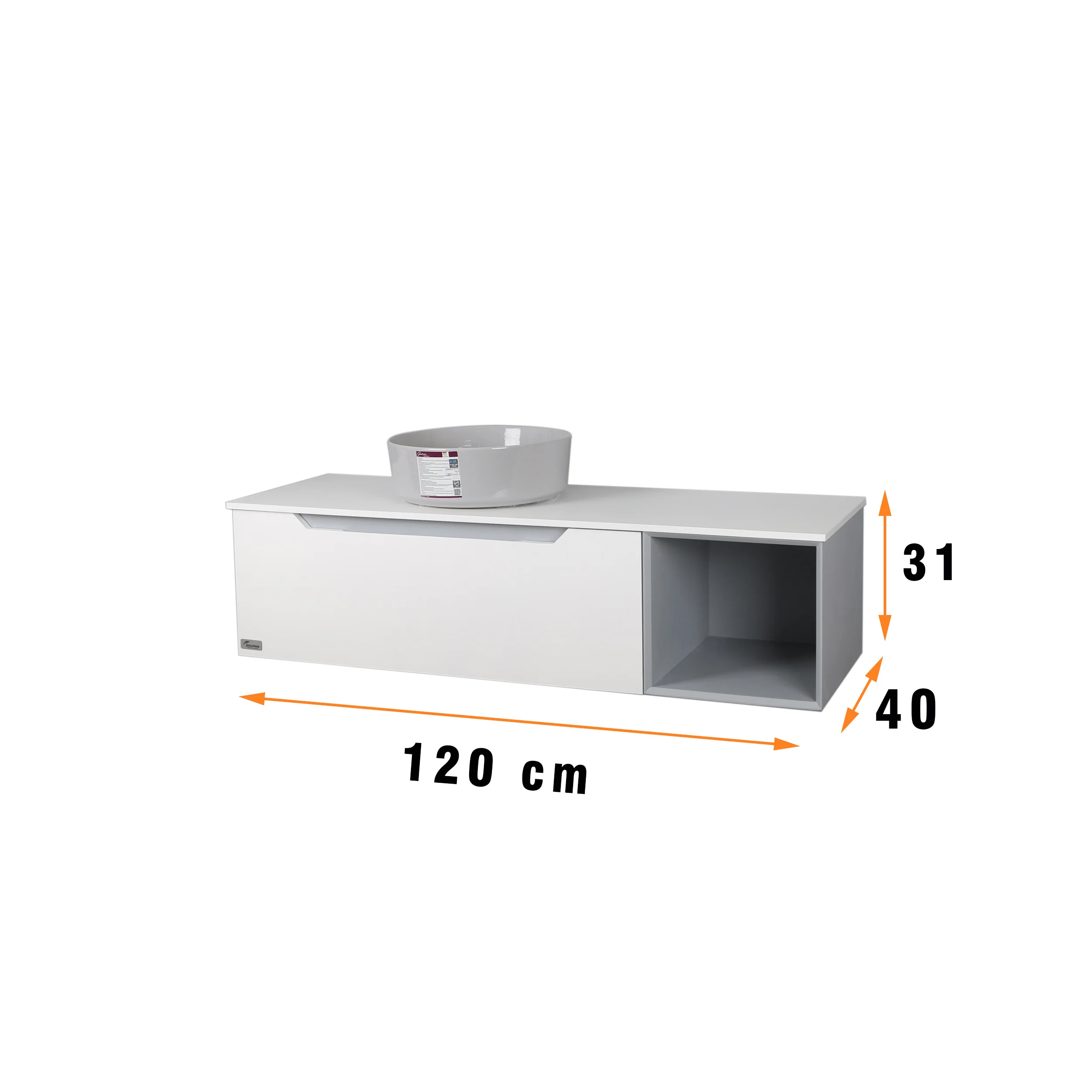 ست کابینت و روشویی دلفین مدل 12040-1 شامل کابینت و سنگ روشویی است. جنس این ست کابینت و روشویی دلفین از پی وی سی (PVC) ضد آب است.