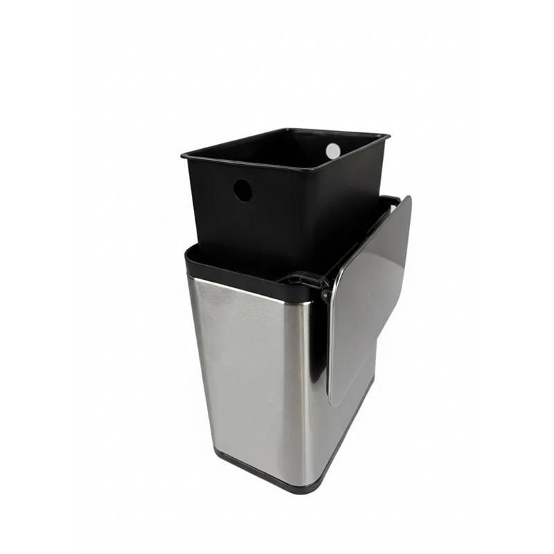 در پشت بدنه یک پایه فلزی مقاوم تعبیه شده تا نصب آن روی درِ کابینت یا دیوار بهسادگی انجام گیرد. درب سطل نیز بهصورت فشاری باز و بسته میشود که علاوه بر زیبایی، مانع خروج بو و آلودگی میگردد.