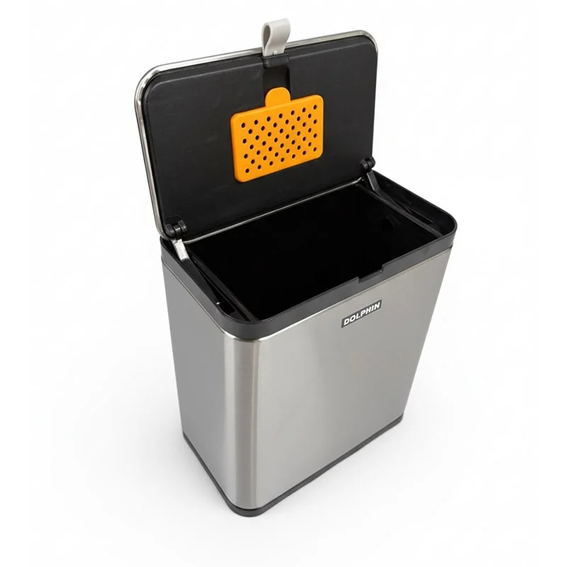 سطل کابینتی دلفین مدل ORG-SS انتخابی کاربردی و مدرن برای آشپزخانه و سرویس بهداشتی است. بدنهی این سطل از استیل ضدزنگ باکیفیت بالا ساخته شده که کاملاً ضد آب بوده و در برابر رطوبت و بخار محیط مقاومت بالایی دارد. طراحی جمعوجور آن باعث میشود فضای کمی اشغال کند و بهراحتی در قسمت داخلی یا بیرونی کابینت نصب شود.