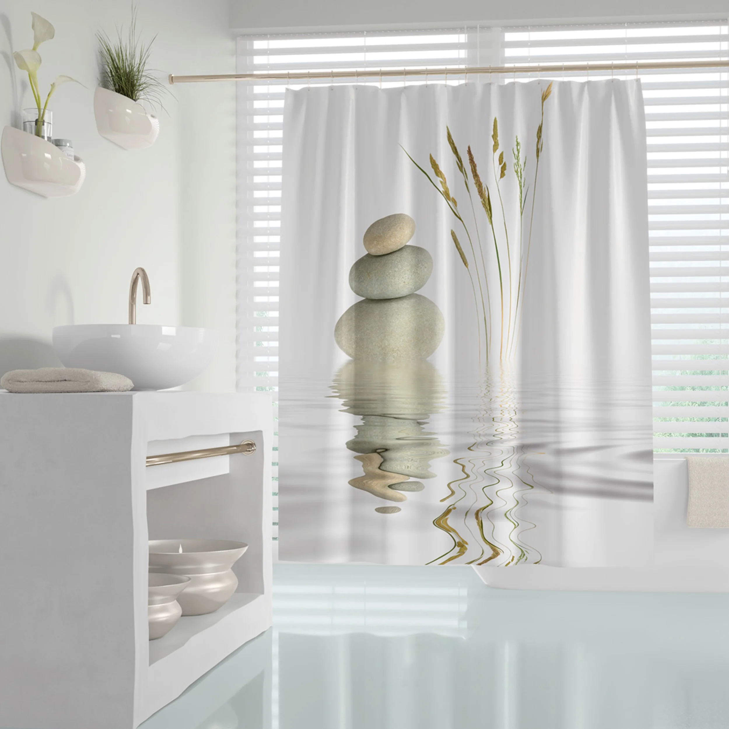 پرده حمام دلفین مدل Stone and Reed سایز 180×200 سانتی متر